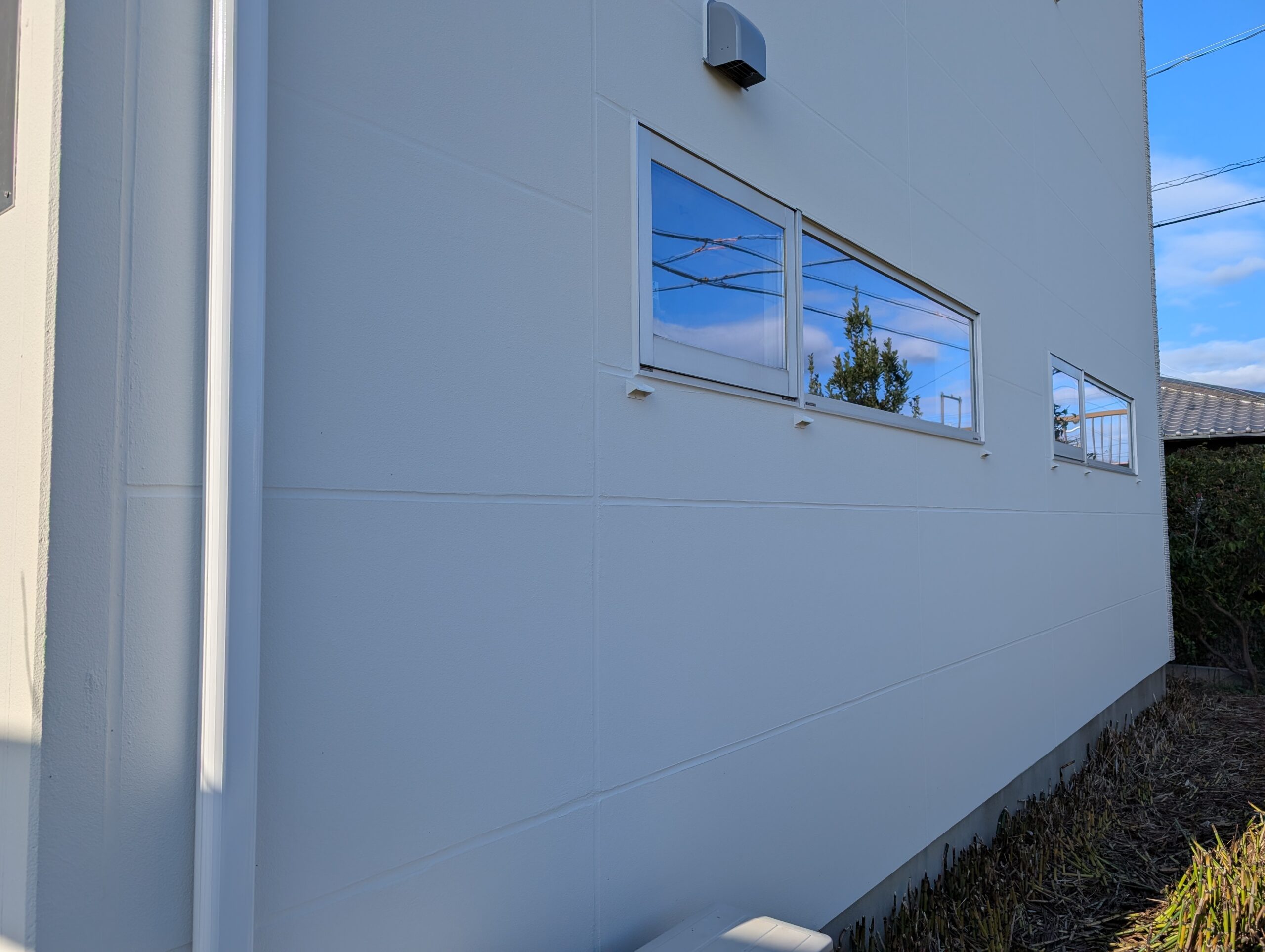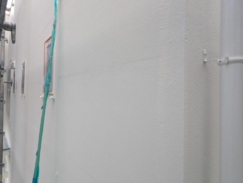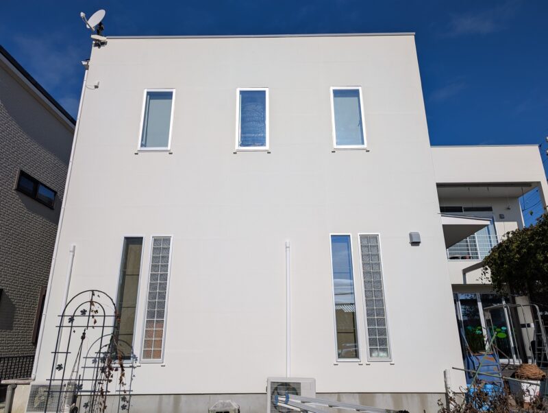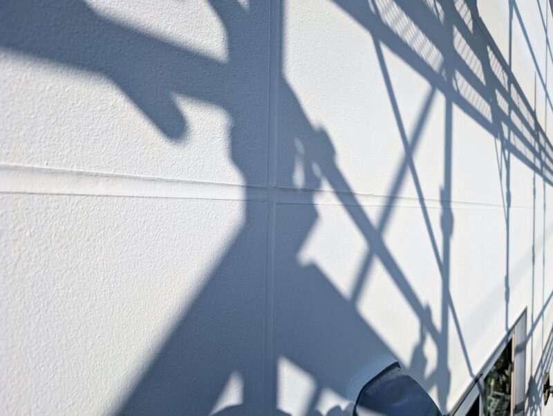 シーリングの乾燥期間は1週間以上設け、上記の下地処理を行ってから基本4回塗りにて仕上げを行いました。下塗りには別メーカーの専用下塗り材「アンダーサーフDS」を採用し、上述の「ビーズコートフレッシュ無機BIO」を3回塗り、膜厚にこだわり1年でも長く美観が長続きするよう日々努めております。