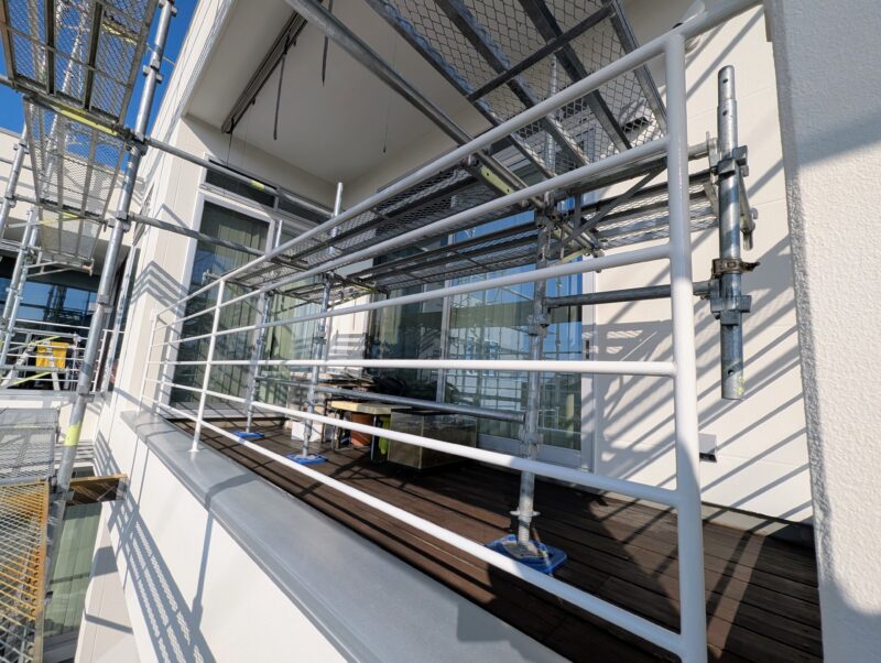 特に今回は、凹凸の少ない小粒ロック仕上げのALC外壁ということもあり、適切な塗膜を確保するため「4回塗り」を必須工程として徹底しました。現場の状況を肌で感じ、「少しでも良い施工を」とその場で最善の判断ができるのは、見積もりから完工までを一貫して行う弊社の大きな特徴です。