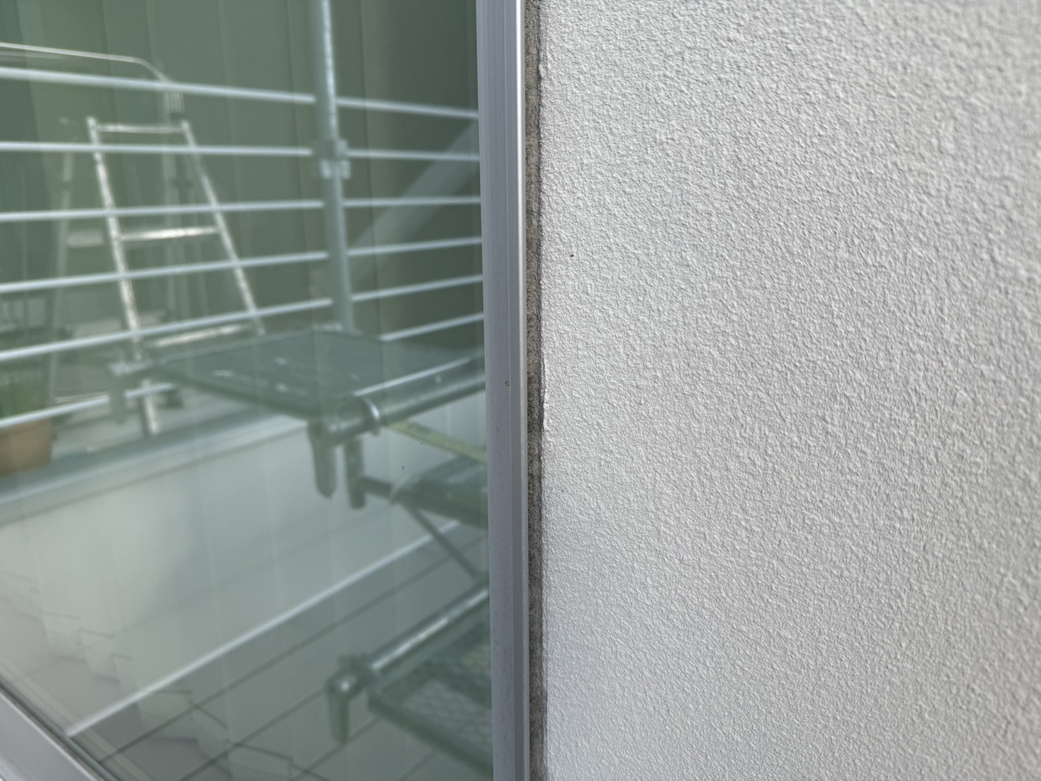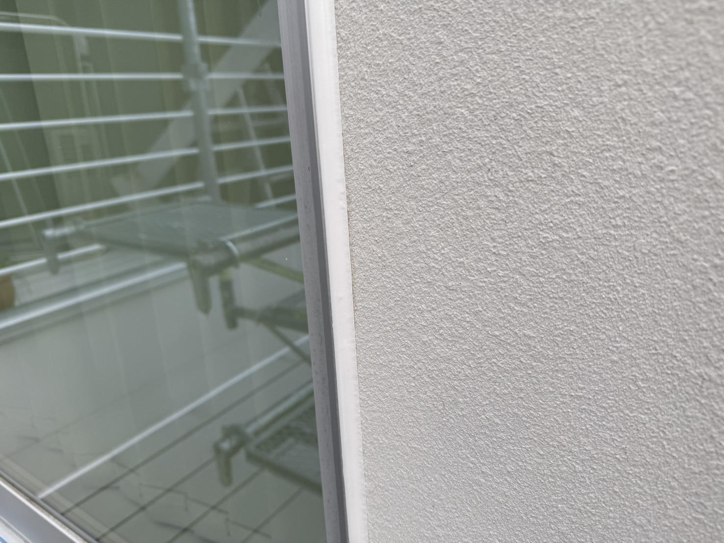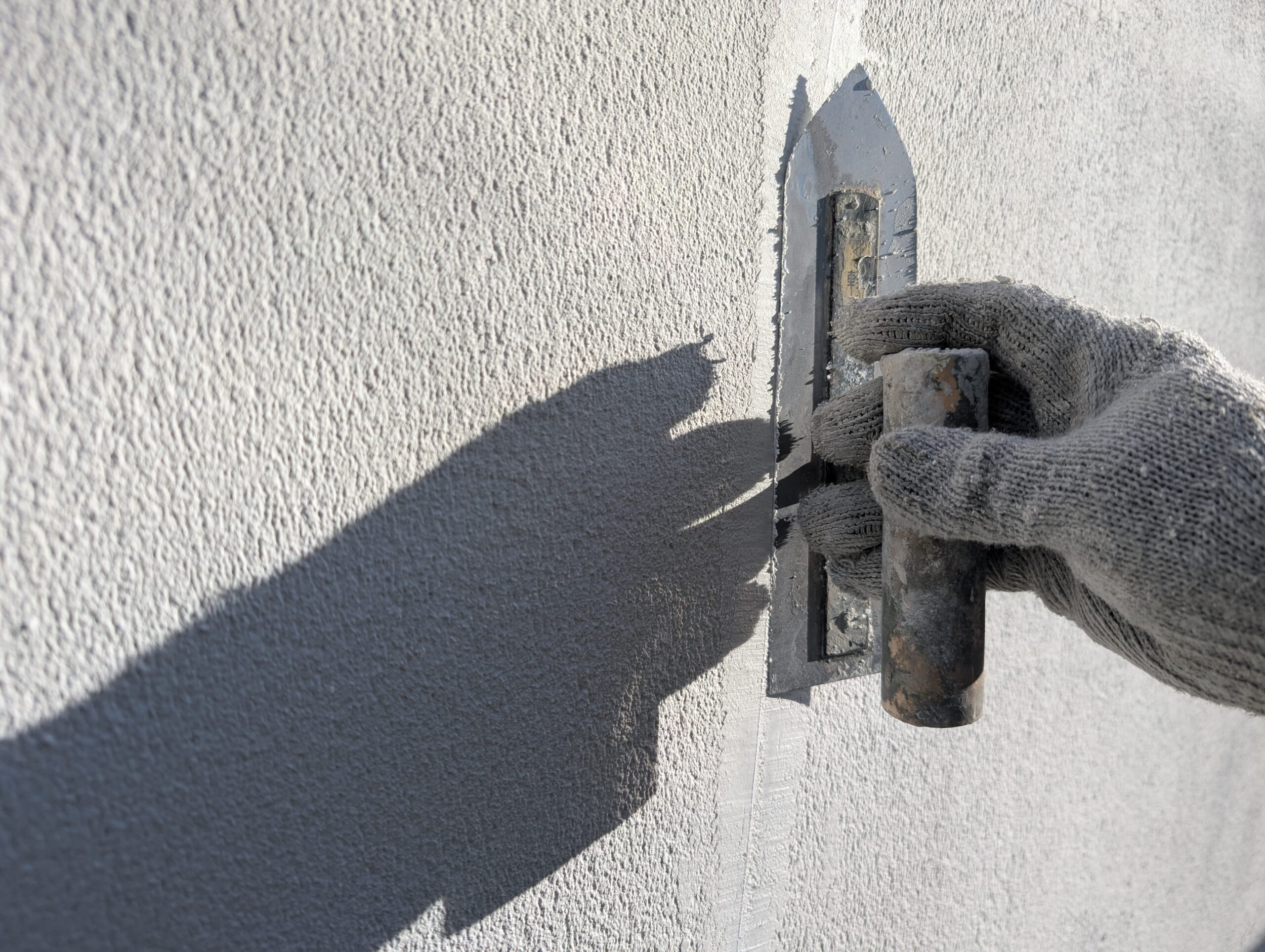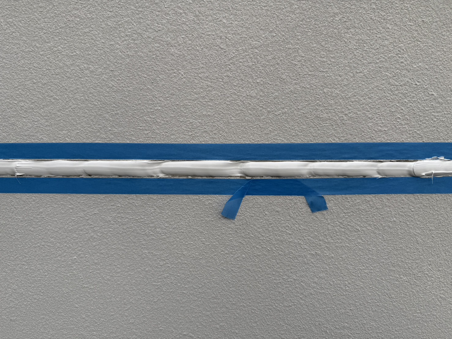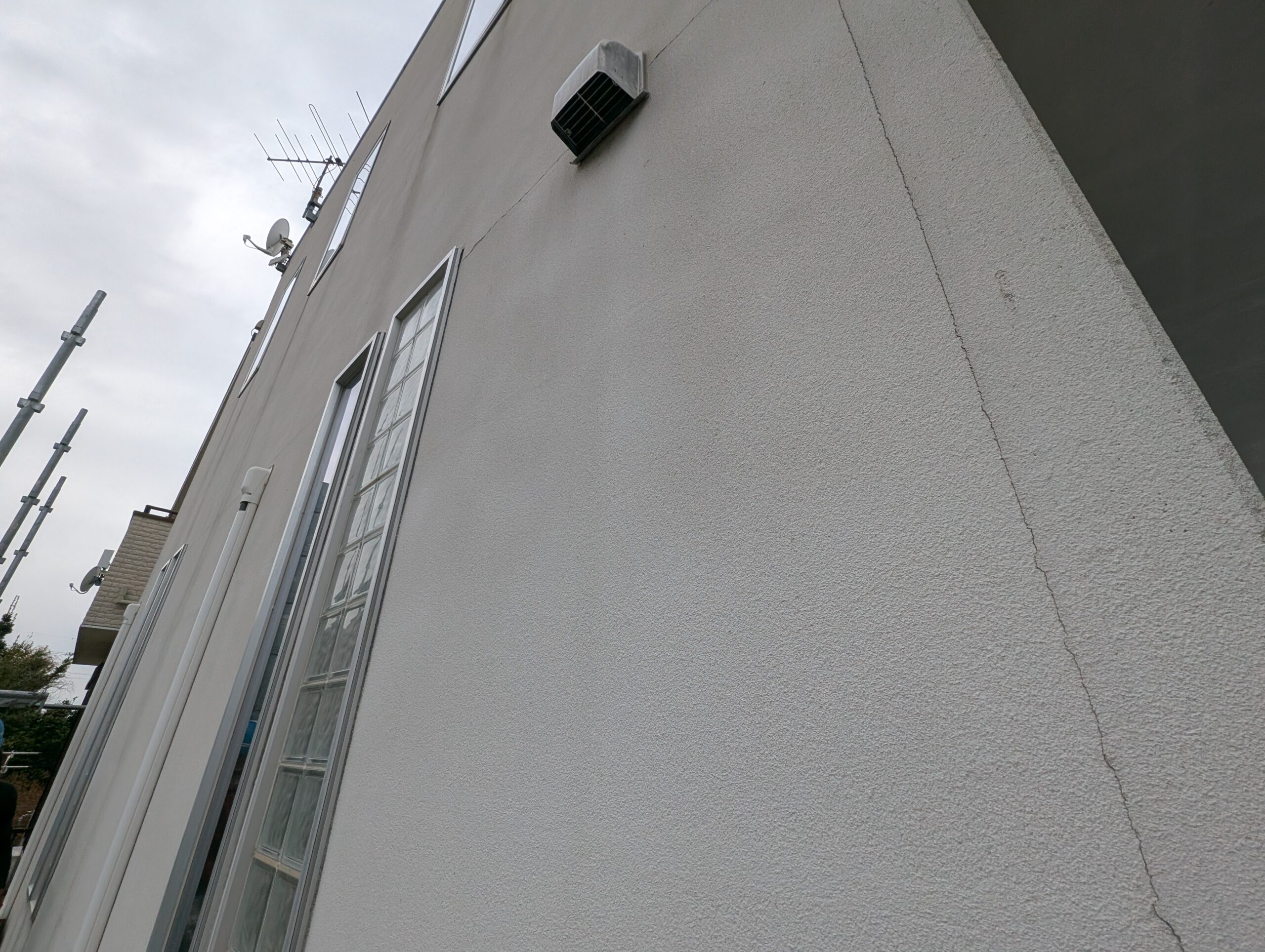 今回の住宅は、設計士さんが個別に設計をされた住宅で、ALC外壁の納まりが少々複雑な方法で仕上げられていました。具体的には、通常通り目地がシーリングで納まっている面、大壁に見せるため目地が軽量モルタルのようなもので埋めてある面の2パターンありました。前者にはシーリングの撤去打ち替え、後者にはひび割れ補修でパテ処理と柄付けにて、それぞれに合った下地調整方法で修繕を行っております。状態が悪い箇所がいくつかあったため、下地処理には特にこだわり作業を進めました。
