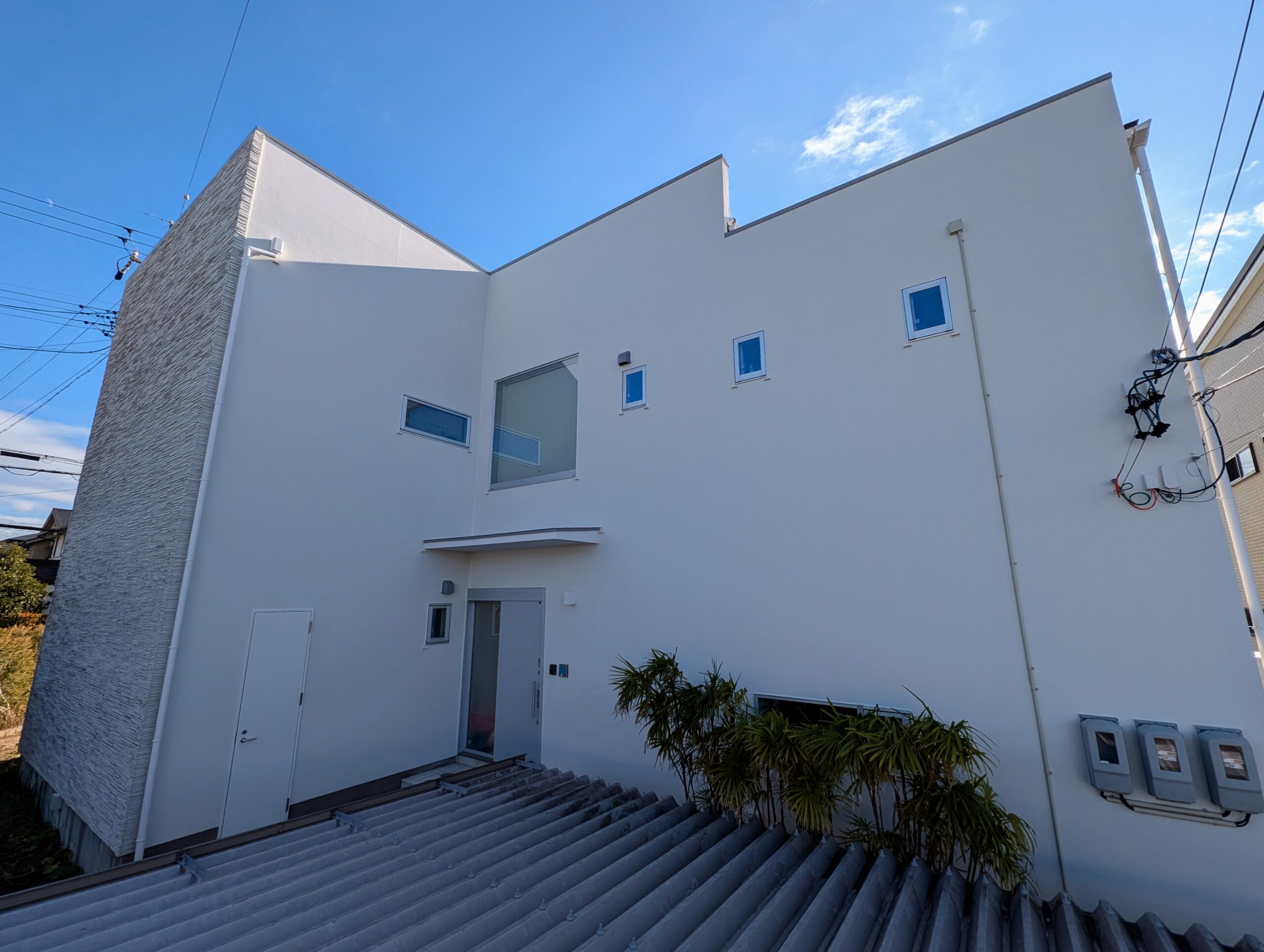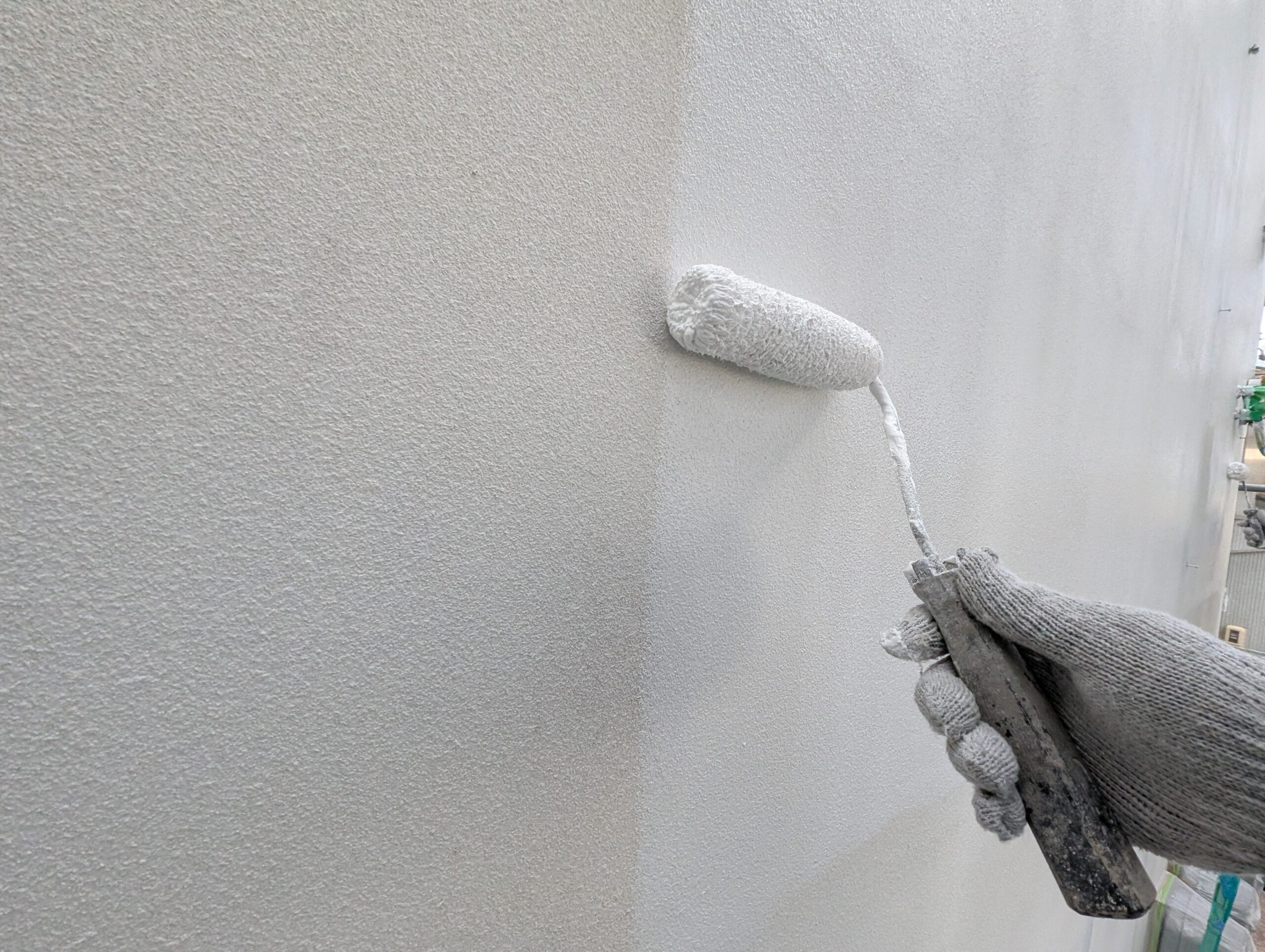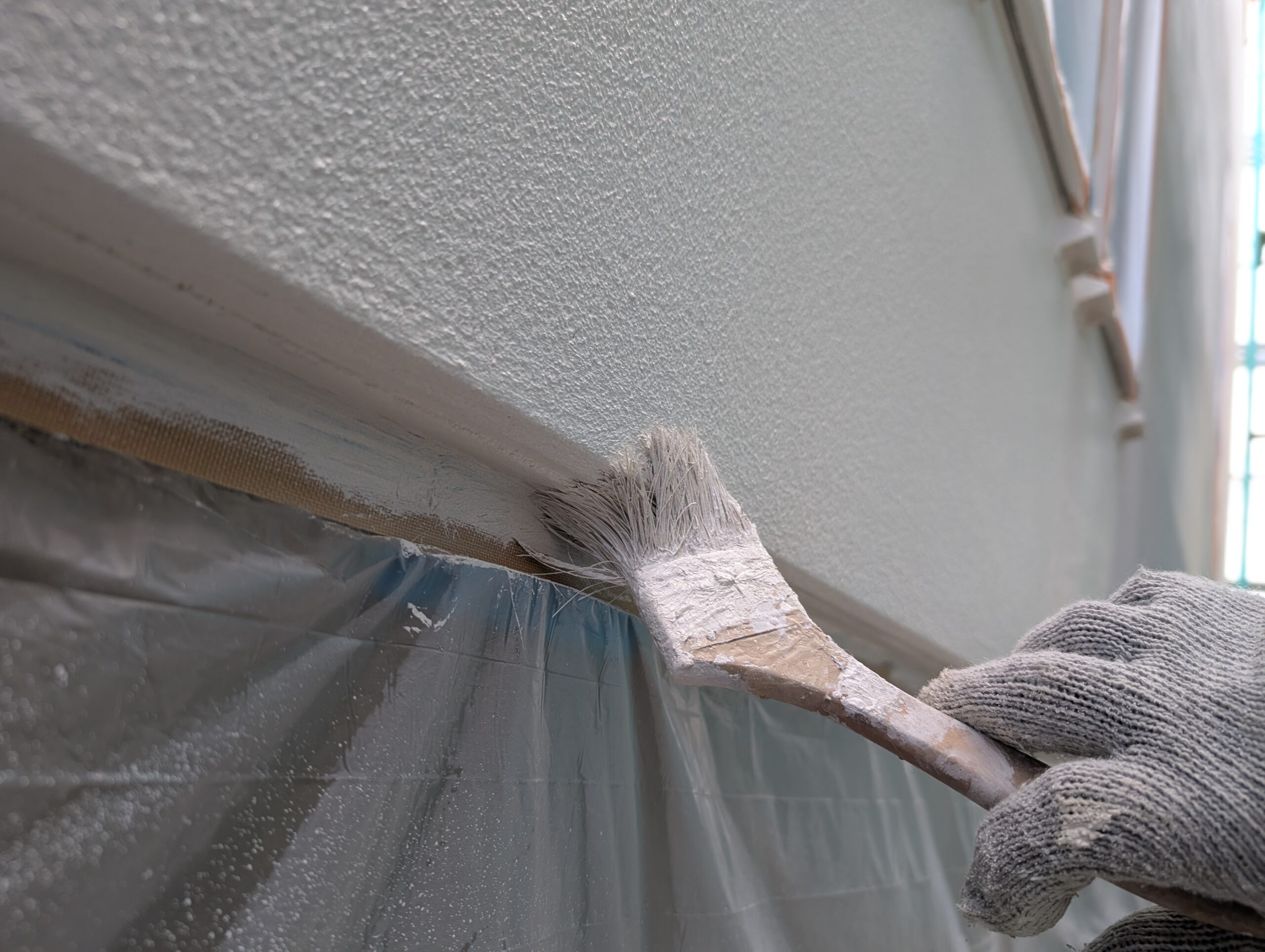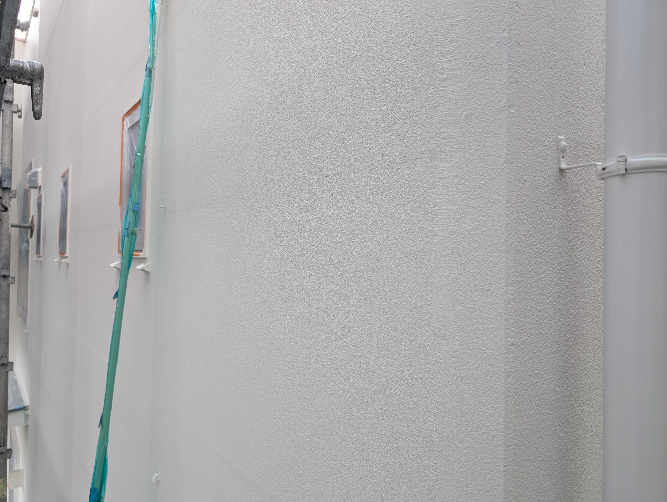 特に今回は、凹凸の少ない小粒ロック仕上げのALC外壁ということもあり、適切な塗膜を確保するため「4回塗り」を必須工程として徹底しました。現場の状況を肌で感じ、「少しでも良い施工を」とその場で最善の判断ができるのは、見積もりから完工までを一貫して行う弊社の大きな特徴です。