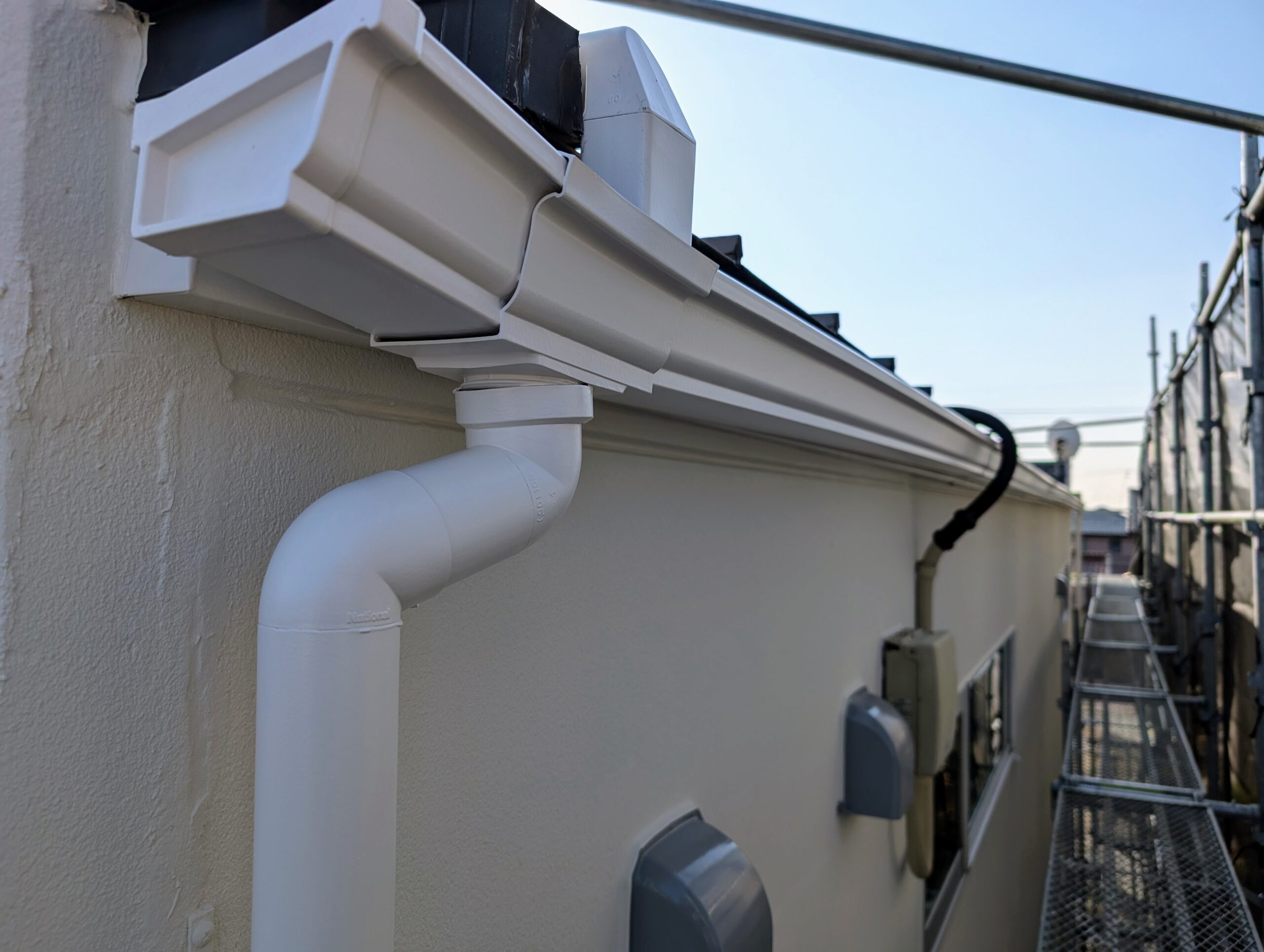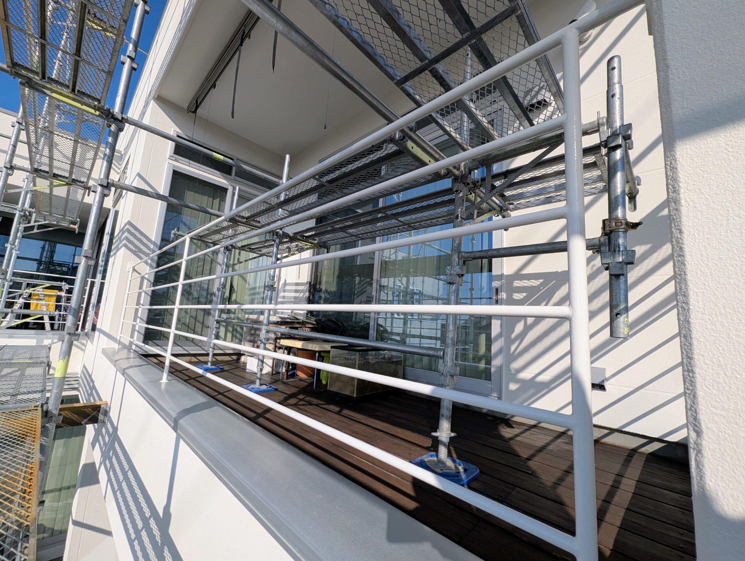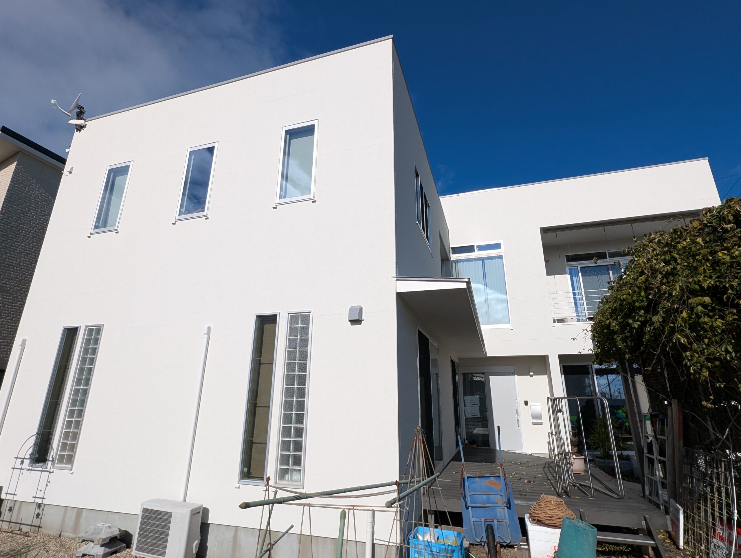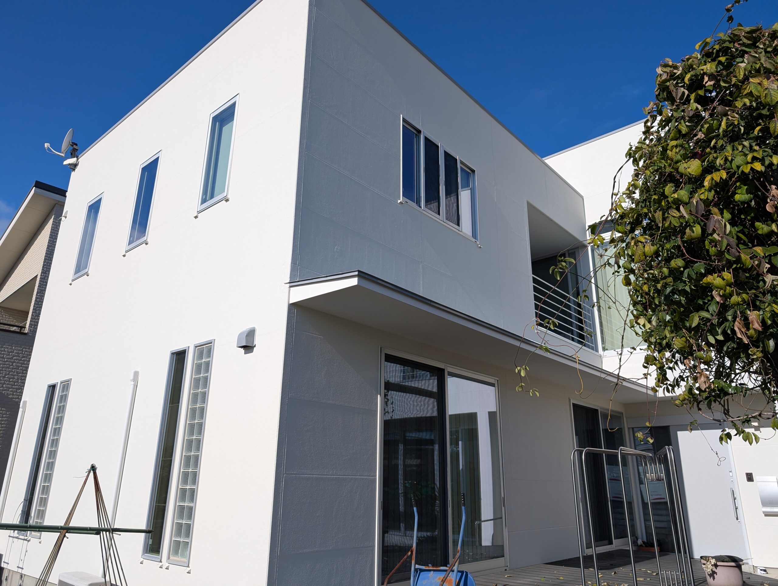シーリングの乾燥期間は1週間以上設け、上記の下地処理を行ってから基本4回塗りにて仕上げを行いました。下塗りには別メーカーの専用下塗り材「アンダーサーフDS」を採用し、上述の「ビーズコートフレッシュ無機BIO」を3回塗り、膜厚にこだわり1年でも長く美観が長続きするよう日々努めております。